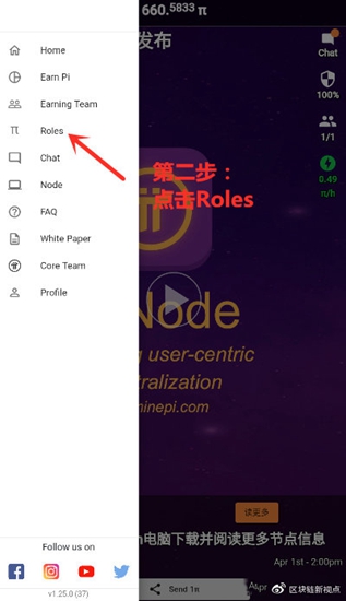 1、打开并登录挖矿软件,点击左上方的功能按钮,选择“Roles”进入。