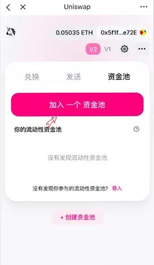 4、【资金池】功能,在 Uniswap 中,除了可以用于代币兑换之外,还可以加入 Uniswap 的资金池,通过为 Uniswap 提供流动性而赚取收益。