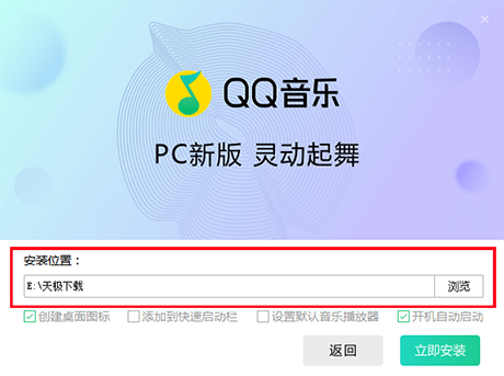 1.从本站下载QQ音乐软件包,进入安装向导,单击【自定义安装】