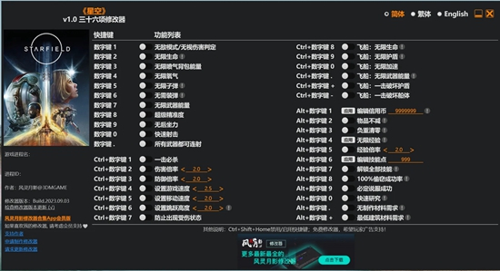 星空游戏风灵月影修改器是风灵月影专门为游戏星空设计的游戏修改器,星空游戏风灵月影修改器玩家将能够利用这些修改器的内容来帮助自己修改各个队友的游戏内容,这款超写实的科幻游戏可以将玩家手中的能量全部释放出来,而修改器也能为玩家提供最大的帮助。