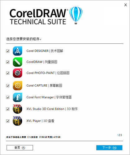 4、选择安装内容选项