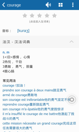 法语助手app下载安卓版拥有与桌面版相同容量的词库。轻松查变位,支持法语所有十八种变位形式以及变位反查功能,法语单词真人发音,完善的生词本、历史记录功能,智能Accent纠正,解决法语字符输入问题,生词本网络同步。包括了法汉-汉法词典、法语近义词词典、法语专业词典以及法法、法英等大量词库,